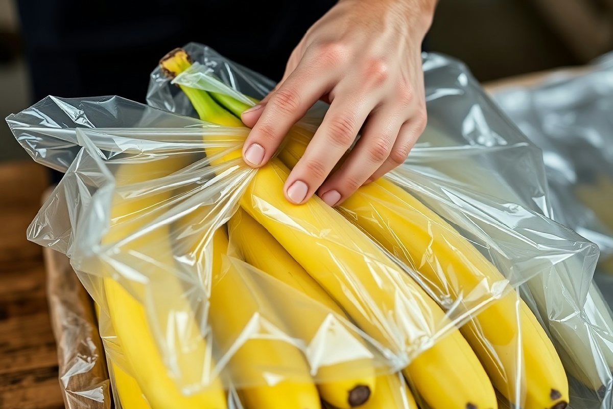 Ora entriamo nel merito della tecnica di avvolgere il picciolo nella pellicola trasparente. Questo semplice atto ha un effetto significativo sulla conservazione delle banane. Avvolgendo il picciolo, si riduce l’emissione di etilene, rallentando di fatto il processo di maturazione. Ma non è solo questo: la pellicola trasparente crea anche una barriera protettiva che limita l’esposizione all’aria e all’umidità , due fattori che possono accelerare il deterioramento del frutto.